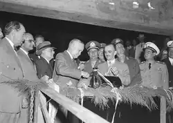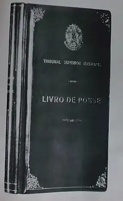 Livro de Posse do Tribunal Superior Eleitoral usado na posse de Gaspar DutraInauguração pelo Presidente Eurico Gaspar Dutra da Companhia Siderúrgica Nacional, 1946. Na esquerda da foto está o então senador de Santa Catarina Nereu Ramos (Arquivo Nacional)