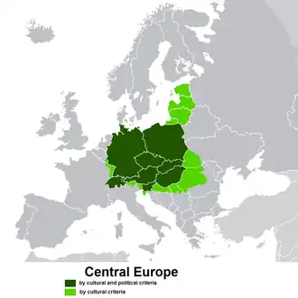 Mapa aproximado da Europa Central, baseados em critérios políticos e culturais.