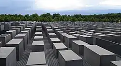 Memorial ao Holocausto, um programa de extermínio sistemático, patrocinado pelo Estado, na Alemanha, em todo o território ocupado pelos nazistas. Levou à morte de pelo menos 5 milhões de pessoas.