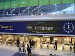 - Eurostar: um trem de passageiros de alta velocidade. Conecta a estação londrina de trem Saint-Pancras com a Estação do Norte (Gare du Nord) em Paris, e a estação Midi/Zuid, em Bruxelas, com paradas em Ashford, Calais e Lille. No dia 14 de outubro de 2007 o serviço passou da estação de Waterloo para a renovada estação de St Pancras internacional com a abertura de uma nova linha, hi-speed 2 que reduz o tempo de percurso entre Londres e Paris para 2 horas, cerca de 30 minutos a menos do que anteriormente.
