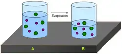 - A concentração da substância evaporante no ar. Se o ar contiver uma alta concentração da substância que evapora, então tal substância evaporará mais devagar.