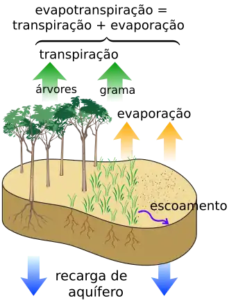 Evapotranspiração refere-se à perda de água do solo por evaporação e à perda de água da planta por transpiração. O termo provém desses dois processos simultâneos que precisam ser mensurados, embora possa significar apenas um dos processos.[1] A quantificação da evapotranspiração é de fundamental importância em atividades ligadas a gestão de bacias hidrográficas, em modelagens meteorológica e hidrológica e, sobretudo, no manejo hídrico da agricultura irrigada.[2]