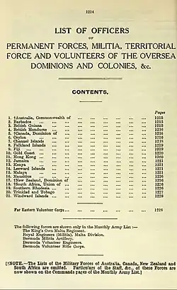 - ↑ «British Army.—Home And Colonial Military Forces.». Parlamento do Reino Unido. 9 de abril de 1913. Consultado em 7 de janeiro de 2024