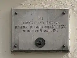 A assistência é numerosa e está dividida. Uma maioria opõe-se à execução, mas os homens armados e guardas nacionais estão preparados. Nas proximidades da Rua de Cléry, o Barão de Batz, apoio da família real que havia financiado a Fuga de Varennes, convocou 300 monarquistas, para fazer evadir o rei. O rei deveria ser escondido em uma casa pertencente ao Conde de Marsan, na Rua de Cléry. O Barão de Batz avança aos gritos de: "Comigo, meus amigos, para salvar o rei!". Porém, seus companheiros haviam sido denunciados e apenas alguns puderam comparecer. Três foram mortos, mas o Barão de Batz pode escapar. Dentro da carruagem, o rei Luís XVI não percebeu nada. No breviário do abade, ele lia a prece dos agonizantes. O cortejo, conduzido por Santerre, prosseguiu seu caminho pelos boulevards e pela Rua da Revolução. Ele entra às 10h00 horas na Praça da Concórdia e para aos pés do cadafalso, instalado em frente ao Palácio das Tulherias, última residência real, entre o pedestal da estátua removida de Luís XV e a parte baixa dos Champs-Élysées. O local é rodeado por canhões em bateria e uma profusão de espadas e baionetas.
