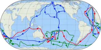Fernão de Magalhães (1480-1521) foi o primeiro navegador a cruzar o Oceano Pacífico, descobrindo o Estreito de Magalhães, as ilhas Tuamotu e Marianas, e conseguindo uma circunavegação quase completa da Terra, em várias viagens, pela primeira vez. Juan Sebastian Elcano (1476–1526), completou a primeira circunavegação global.