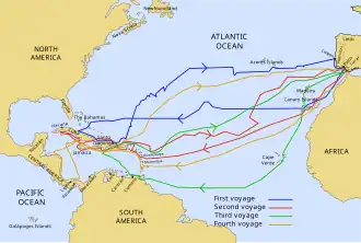 As explorações das Américas começaram com a descoberta inicial da América por Cristóvão Colombo (1451-1506), que liderou uma expedição castelhana (espanhola) através do Atlântico, descobrindo a América. Após a descoberta da América por Colombo, várias expedições importantes foram enviadas para explorar o hemisfério ocidental. Isso incluiu Juan Ponce de León (1474–1521), que descobriu e mapeou a costa da Flórida; Vasco Núñez de Balboa (c. 1475–1519), que foi o primeiro europeu a ver o Oceano Pacífico da costa americana (depois de cruzar o istmo do Panamá), confirmando que a América era um continente separado da Ásia; Aleixo Garcia (14? –1527), que explorou os territórios do atual sul do Brasil, Paraguai e Bolívia, cruzando o Chaco e alcançando os Andes (próximo a Sucre).
