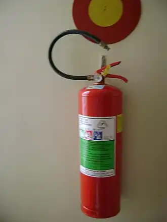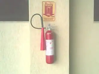 Um extintor de incêndio (do latim extinctore)[1] é um equipamento de segurança que possui a finalidade de extinguir ou controlar princípios de incêndios em casos de emergência. Em geral, é um cilindro que pode ser carregado até o local do foco do incêndio, contendo um agente extintor sob pressão.