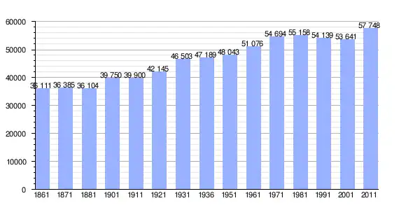 | Variação demográfica do município entre 1861 e 2011[7] |