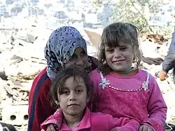 A população da Faixa de Gaza era de 2,4 milhões habitantes em 2022,[2] dos quais quase um milhão delas eram refugiados registrados na ONU.[145] A maioria descende de refugiados que foram expulsos ou deixaram suas casas durante a Guerra Árabe-Israelense de 1948. A população da Faixa continuou a aumentar desde então, principalmente devido a uma taxa de fertilidade total que atingiu o pico de 8,3 filhos por mulher em 1991. Esta caiu para 4,4 filhos por mulher em 2013, que ainda estava entre as mais altas do mundo.[146][147]