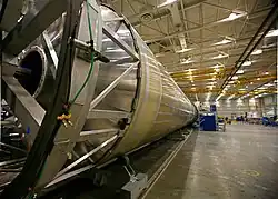 As paredes dos tanques são feitas de liga alumínio soldadas por processo de fricção (a técnica de soldagem mais moderna existente). A seção entre estágios, é fabricada por um composto de alumínio e fibra de carbono.[1]