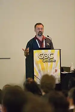 - ↑ Spector, Warren (5 de dezembro de 2000). «Postmortem: Ion Storm's _Deus Ex _» [Pós-mortem: _Deus Ex_ de Ion Storm]. Game Developer (em inglês). Consultado em 26 de maio de 2025. Cópia arquivada em 31 de maio de 2022