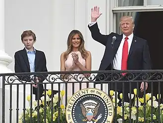 ![]() Donald Trump com a sua esposa Melania e o seu filho mais novo, Barron. | |