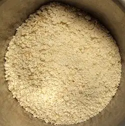 Farinha é um pó alimentício feito pela moagem de grãos crus, raízes, feijões, nozes ou sementes. As farinhas são usadas para fazer muitos alimentos diferentes. A farinha de cereais, particularmente a farinha de trigo, é o principal ingrediente do pão, que é um alimento básico para muitas culturas. A farinha de milho tem sido importante na culinária mesoamericana desde os tempos antigos e continua sendo um alimento básico nas Américas. A farinha de centeio é um componente do pão no centro e norte da Europa.