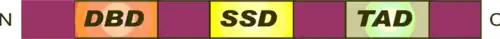 - Um domínio sensível ao sinal opcional (SSD) (por exemplo, um domínio de ligação a um ligando), que é sensível a sinais externos e, em resposta a eles, transmite estes sinais ao resto do complexo de transcrição, causando um aumento ou diminuição da expressão do gene. Além disso, o domínio de ligação ao ADN e os domínios sensíveis ao sinal podem encontrar-se em proteínas separadas que se associam ao complexo de transcrição para regular assim a expressão génica.