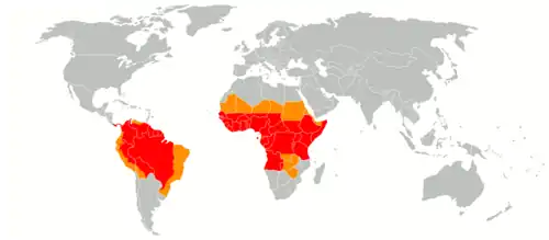 Área onde a febre amarela é endêmica