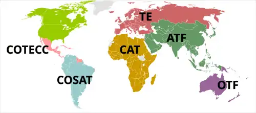 - Membros sem filiação regional (Canadá e Estados Unidos).