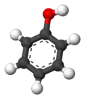 Fenol é uma função orgânica caracterizada por uma ou mais hidroxilas ligadas a um anel aromático. Apesar de possuir um grupo -OH característico de um álcool, o fenol é mais ácido que este, pois possui uma estrutura de ressonância que estabiliza a base conjugada.[7] São obtidos principalmente através da extração de óleos a partir do alcatrão de hulha.