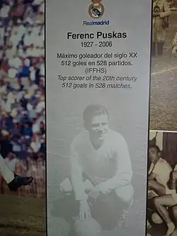 - ↑ «Ferenc Puskás - ARFTS Player Profile». Consultado em 20 de dezembro de 2017. Arquivado do original em 22 de dezembro de 2017