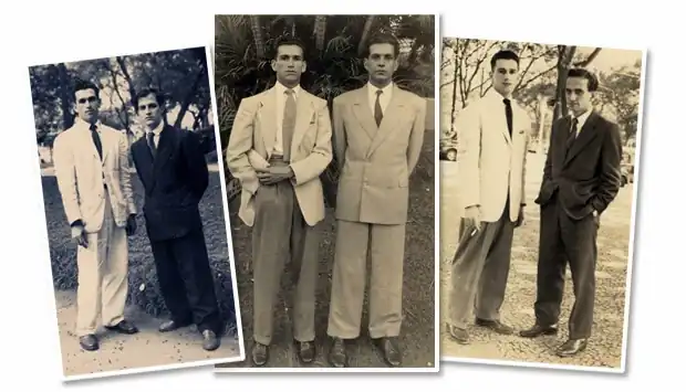 Fotografia de acervo pessoal - Fernando Sabino com cada um dos três amigos inseparáveis.