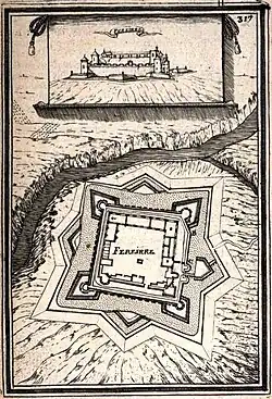 História![]() ToponímiaJoaquim de Santa Rosa de Viterbo apresentou na sua obra Elucidário várias explicações para a origem do topónimo Ferreira, incluindo um tipo de renda, denominado de ferro ou ferradura, ou a existência de uma oficina, conhecida como ferraria, ou de uma fundição de ferro.[25] O termo ferraria evoluiu para ferreira, tendo o historiador considerado a vila de Ferreira como um dos principais exemplos desta alteração toponímica em Portugal.[26] Outra explicação provém do Juízo de Deus, um hábito introduzido durante o paganismo e difundido depois durante a religião cristã, de utilizar ferro em brasa, carregado nas mãos ou usado como sapatos por pessoas acusadas de crimes, como forma de provar a sua inocência.[25] Segundo a tradição, o nome veio de uma mulher guerreira que defendeu a cidade romana de Singa, que empunhava malhos ou martelos de ferreiro.[25] Uma vez que estava casada com um ferreiro, era alcunhada de ferreira, tendo dado o nome à vila.[27] ![]() FundaçãoAs origens da ocupação humana no território do concelho de Ferreira do Alentejo são muito antigas, existindo vestígios desde a pré-história.[5] Com efeito, a qualidade dos solos e a existência de várias linhas de água favoreceram a presença humana desde o Calcolítico, tendo sido encontrado um rico espólio arqueológico ao longo das margens da ribeira de Vale de Ouro[10] e no Povoado do Porto Torrão.[28] O povoado de Ferreira do Alentejo, que era um núcleo urbano aberto de grandes dimensões, terá sido ocupado como parte de uma vaga de colonização durante os primeiros anos do segundo milénio antes de Cristo, embora possa ter sido, ainda durante o terceiro milénio, o núcleo de uma rede de povoações de funções relativamente especializadas.[29] Desta forma, seria um exemplo da organização do povoamento do território, durante esse período.[29] Junto a Ferreira do Alentejo existia uma antiga cidade romana, denominada de Singa, cujos vestígios podem ter sido encontrados a nascente da vila,[25] atrás da antiga localização do castelo.[30] Um relato semelhante é feito pelo historiador Inácio de Vilhena Barbosa, num artigo publicado na revista Illustração Luso-Brasileira em 1859: «No principio do seculo passado ainda se viam junto á villa, para o lado nascente, restos de edificios em uma extensão de meia legua».[31] No concelho foram encontrados outros indícios do período romano, incluindo lápides em Figueira dos Cavaleiros, que terão originalmente feito parte de um templo à deusa Fortuna, e que depois terá sido substituído pela Igreja de Santa Margarida do Sado.[11] Outra sepultura foi colocada no cunhal de uma parede, na Igreja do Espírito Santo.[7] Outros vestígios do mesmo período foram encontrados em Alfundão, onde foi identificada uma ponte e várias ruínas, e na freguesia de Odivelas.[11] Em 1796 foram descobertas várias moedas de prata e bronze, com retratos de imperadores e cônsules romanos.[9] As moedas de prata foram encontradas num local entre Ferreira e Barrelas, enquanto que as de bronze estavam num monte perto do Vale da Ribeira.[9] Também foram desenterrados diversos instrumentos domésticos, fabris e agrários em ferro, já em avançado estado de degradação.[9] Outro importante vestígio arqueológico do período romano no concelho é a villa do Monte da Chaminé, por onde posteriormente passou o caminho de Santiago.[32] Segundo a tradição popular, no ano de 405,[9] nos finais do domínio romano, a cidade de Singa terá sido atacada pelos godos, suevos e alanos e outros povos bárbaros, tendo uma das principais defensoras uma mulher, que guardou a entrada do castelo com ferramentas de ferreiro, e que terá dado o nome à vila.[25] Sobre esta lenda, a Illustração Luso-Brasileira refere que «segundo a tradição foi no tempo dos romanos uma cidade com o nome de Singa, na qual se fez celebre uma matrona, defendendo valorosamente a porta do castello da mesma cidade por ocasião da invasão dos godos e suevos. Em memoria d'este feito dizem, que tomara esta povoação por armas a figura de uma mulher com dois malhos nas mãos; brasão que a villa actual adoptou como prova da sua antiguidade.»[31] A ocupação continuou após o final do período romano, uma vez que foram encontrados vestígios visigóticos e muçulmanos, tendo esta última civilização deixado a sua presença em vários edifícios de forma cúbica com cobertura em cúpula, denominados de Kubba, encontrados em Vilas Boas, São Vicente e São Sebastião.[10] Foi provavelmente durante o domínio muçulmano que a cidade romana foi destruída, tendo a nova povoação sido estabelecida nas imediações da antiga, situação que se repetiu em vários casos em território nacional naquele período.[25] Com efeito, o castelo tinha alguns vestígios de ter sido construído durante o domínio muçulmano, tendo sido posteriormente instaladas as muralhas com barbacã e torres.[25] Outra teoria indica que a cidade terá sido destruída pelos godos, por ter resistido à invasão.[9] Época medieval e moderna![]() Séculos XIII a XVSegundo documentos da chancelaria régia de D. Sancho II e D. Afonso III, a zona onde se encontra Ferreira do Alentejo foi conquistada aos mouros em 1233, e doada à Ordem de Santiago da Espada no ano seguinte.[10] Esta ordem procedeu à cultivação e desenvolvimento da região, que nessa altura era quase totalmente deserta,[10] tendo construído um castelo no topo de uma colina.[6] Porém, segundo a tradição popular, este castelo terá sido fundado em 1150 por D. Gualdim Pais, mestre da Ordem dos Templários.[9] Este castelo era uma filial dos espatários de Alcácer do Sal, sendo em 1527 o alcaide Francisco Mendes do Rio, e em 1708 Baltazar Pereira do Lago.[10] Do ponto de vista espiritual, o castelo pertencia ao bispado de Évora.[27] A ordem de Santiago também construiu uma igreja a cerca de uma légua de distância da vila, na aldeia 