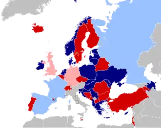 Países Europeus e respectivas bandeiras (é possível avaliar os votos vizinhos).