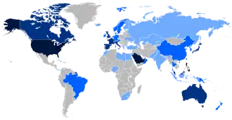 ![]() Mapa da diáspora filipina ao redor do mundo. | |