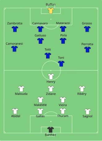 - ↑ FIFA.com. «Italy vs France - Match report» (em inglês). Consultado em 13 de julho de 2010