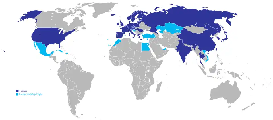 A Finnair tem uma vasta rede de destinos, para a Europa (60 destinos), Ásia (13 destinos) e América do Norte (3 destinos). De momento, a companhia não oferece voos regulares para África. No Brasil, são realizados voos Charter para Recife, PE. Com a introdução dos E-Jets, a companhia estende suas operações na Europa.