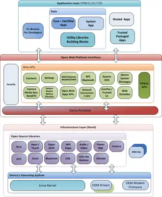 O Firefox OS foi um sistema operacional livre desenvolvido pela Mozilla e baseado no navegador da web Firefox. Além de ter a Mozilla como principal responsável, o Firefox OS conta com apoio de outras empresas[2] como a Telefônica[3][4] e uma vasta comunidade de voluntários em todo o mundo. Este sistema operacional tem como alvo dispositivos móveis, em especial, modelos mais simples e de baixo custo, já que prioriza o baixo consumo de recursos, como processamento e memória RAM. No entanto, é possível encontrá-lo em outros tipos de equipamento, como computadores portáteis de baixo consumo energético.[5] No Brasil, os aparelhos comercializados são o Alcatel One Touch Fire e o LG Fireweb.[6]