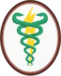- SERPENTES – enrolar-se-ão no raio de cima para baixo, uma da esquerda para a direita e a outra da direita para a esquerda em forma elíptica, passando pela frente, por trás, pela frente e parte superior e inferior do raio respectivamente, tendo a maior distância entre elas de 4/10 do eixo maior interno do Camafeu e na parte superior da extremidade do raio à distância de 1,2/10 do eixo maior interno do Camafeu e na parte inferior da extremidade do raio à distância de 0,3/10 do eixo maior interno do Camafeu, com impressão em quatro cores, escala CMYK, nas cores: verde (C100/M0/Y90/K40) e preta (K100);