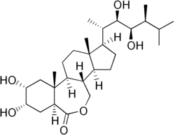Os brassinosteroides são uma classe de poli-hidroxiesteroides, o único exemplo de hormônios baseados em esteroides nas plantas. Os brassinosteroides controlam o alongamento e a divisão celular, o gravitropismo, a resistência ao estresse e a diferenciação do xilema. Eles inibem o crescimento radicular e a abscisão foliar. O brassinolida foi o primeiro brassinosteroide identificado e foi isolado a partir de extratos de pólen de colza (Brassica napus) em 1979.[26]