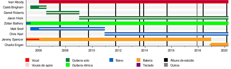 | Ex-integrantes | Matt Snell (baixo) Darrell Roberts (guitarra principal) Caleb Bingham (guitarra principal)Jeremy Spencer (bateria) |