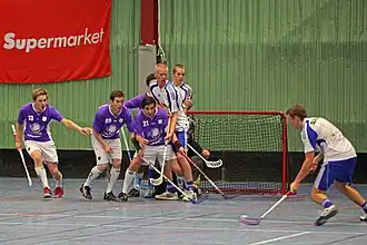 O floorball é um esporte, praticado no interior de um recinto, em que se enfrentam duas equipes de seis jogadores de campo e um guarda-redes, utilizando sticks e uma pequena bola oca.[1]