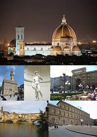 A cidade é considerada o berço do Renascimento italiano, e uma das cidades mais belas do mundo.[3][4] Tornou-se célebre também por ser a cidade natal de Dante Alighieri, autor da Divina Comédia, que é um marco da literatura universal e de onde a língua italiana moderna tem várias influências. Nesse poema ele descreve a cidade de Florença em muitas passagens, assim como alguns de seus contemporâneos florentinos célebres, como Guido Cavalcanti, amigo que também era poeta e ativo na vida política da cidade, que também são personagens da obra. Também é florentino Cimabue, o último grande pintor italiano a seguir a tradição bizantina, e responsável pela "descoberta" de Giotto.