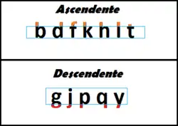 O descendente de uma fonte é a parte da letra que se estende abaixo da altura de seu corpo. É encontrado, por exemplo, nas letras "g, j, p, q, y", sendo que, algumas vezes, está presente na letra "J" em caixa alta.