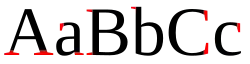 Fonte serifa com serifas realçadas em vermelho |