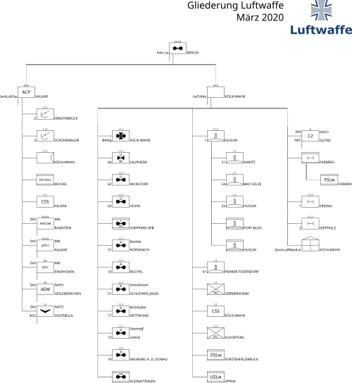 - ↑ Bundesministerium der Verteidigung, Leiter des Presse- und Informationsstabes (28 de novembro de 2017). «Die Organisation der Luftwaffe». Consultado em 25 de novembro de 2020
