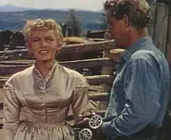 Jean Arthur (1900 - 1991) e Alan Ladd (1913 - 1964) em cena de Os brutos também amam ("Shane", 1953), outro marco do cinema, também usado como referência para a produção artística de Força de um desejo.
