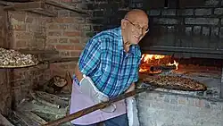 As primeiras fôrmas de assar foram desenvolvidas pelos egípcios. Um forno em forma de cone, com interior aquecido em brasa, fazia com que massas moles, achatadas, colocadas aderentes às suas paredes externas atingissem o ponto em que poderia ser consumidas (assadas). Aos poucos, o equipamento evoluiu, até tomar características que se aproximam muito do forno que utilizamos atualmente.[3] O forno de pão tradicional é geralmente uma construção em barro ou tijolos com uma base lisa onde primeiro se coloca lenha que se deixa arder para o aquecer. Quando o forno já está à temperatura adequada, encostam-se as brasas a um canto, limpa-se bem a superfície e coloca-se aí o que se quer assar (pão, bolos, pizza, carne ou peixe). Atualmente os fornos indústriais de pão são aquecidos a electricidade ou algum combustível derivado do petróleo.
