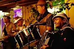 Forró é uma festa e um gênero musical originário da Região Nordeste do Brasil, bastante popular e comum, especialmente, nas festas juninas.[2][3] O nome da festa "forró" é usado para nomear distintos gêneros musicais como o xote, baião, arrasta-pé e o xaxado, por isso quem não conhece suas histórias, as confundem com um gênero único.[4][5] As músicas são executadas tradicionalmente por trios instrumentais com acordeão ("sanfona"), zabumba e triângulo.[6]