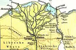 Mapa de 1930 destacando o delta do Nilo