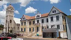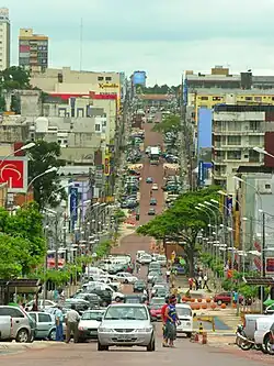 Vista aérea da cidade Paróquia São João Batista Templo Budista Chen Tien Mesquita Omar Ibn Al-Khatab Ponte da Amizade Marco das Três Fronteiras Catedral Nsa. Sra. de Guadalupe | |