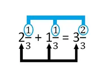 no caso de ter duas frações mistas, somamos ou subtraímos os números inteiros, mantemos o denominador e somamos ou subtraímos o numerador.