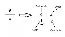 Com isso o quociente da divisão é a parte inteira da fração mista, o resto será seu numerador e o divisor será seu denominador.