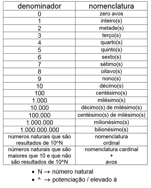 Regras para leitura dos denominadores.