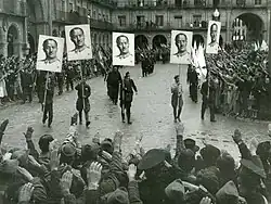 Em 1 de outubro de 1936, em Burgos, Franco foi proclamado publicamente como Generalísimo do Exército Nacional e Jefe del Estado (Chefe de Estado).[112] Quando Mola morreu em outro acidente aéreo um ano depois, em 2 de junho de 1937 (que alguns acreditam ter sido um assassinato), não sobrou nenhum líder militar daqueles que organizaram a conspiração contra a República entre 1933 e 1935.[113]