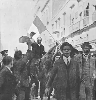 A primeira fase da Revolução Mexicana terminou assim com Díaz partindo para o exílio na Europa no final de maio de 1911, escoltado ao exílio pelo general Victoriano Huerta. Em 7 de junho de 1911, Madero entrou na Cidade do México em triunfo, onde foi recebido com grandes multidões gritando "¡Viva Madero!"