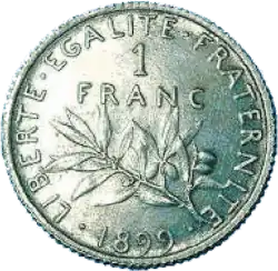 As moedas do franco francês primeiramente foram feitas em prata e mais tarde de alumínio, um material barato e leve.