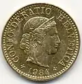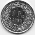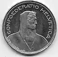 ![]() | ![]() | Uma coroa de uma flor dos Alpes; Helvécia, vista de perfil, com um tipo de coroa com a inscrição Libertas (liberdade). |
