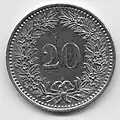 ![]() | ![]() | o mesmo que na moeda de 2 CHF |